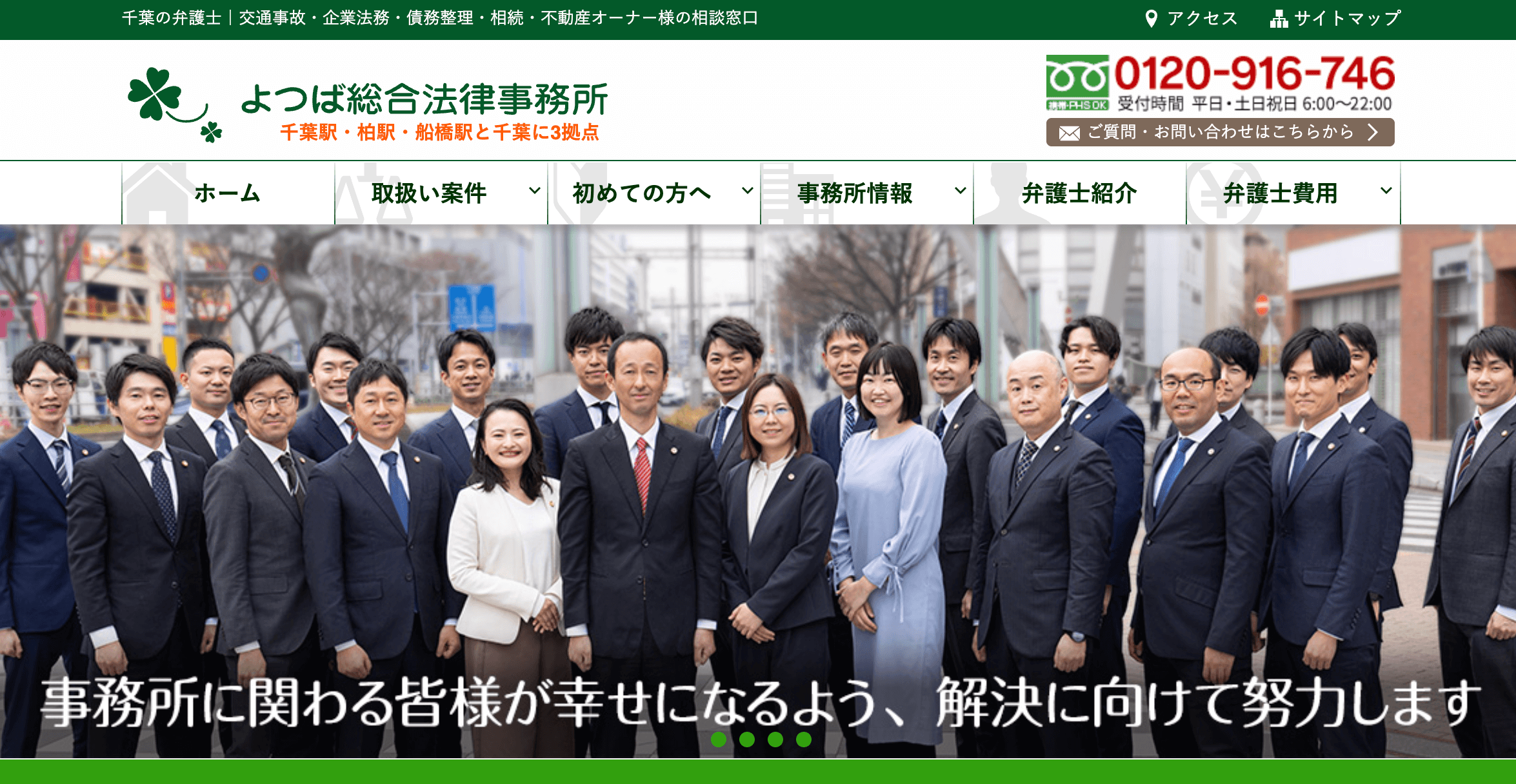 船橋や柏といった主要都市はもちろん、どのエリアからでも全国トップクラスの弁護士と即座につながれるのがメリット。